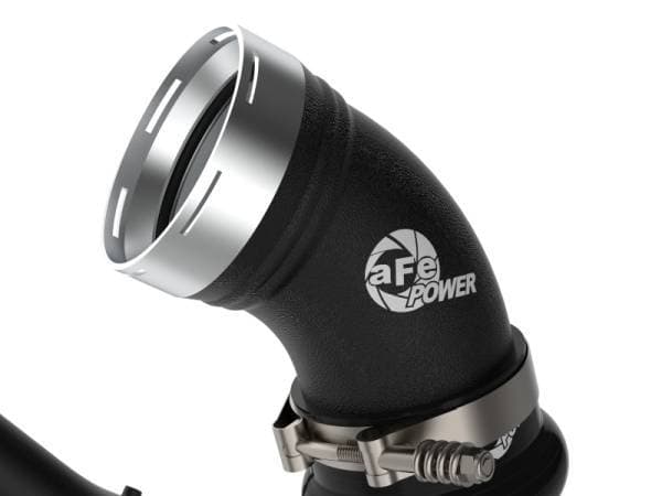 Smooth transitions in the mandrel-bent aluminum pipes decrease turbulence and minimize pressure loss, increasing horsepower and torque. This charge pipe kit provides a smooth transition between the turbo and the engine for lower operating temperatures and increased power. This kit includes high-quality, stainless-steel, spring-loaded T-bolt clamps and heavy-duty, 5-ply, polyester reinforced silicone couplings. This charge pipe kit also features factory style billet aluminum quick-connect adapters with o-ring seals to ensure a leak-free fit while maintaining superior strength and durability. Finished in wrinkle black powder coating with a unique laser-etched aFe POWER logo for a custom look.