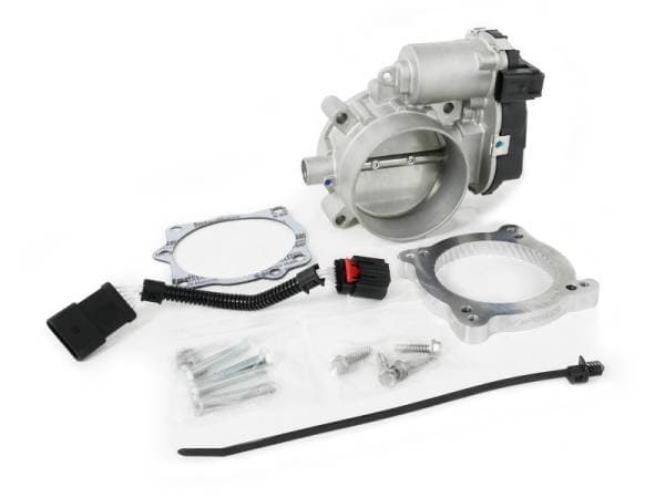 This aFe POWER 80mm Throttle Body and adapter kit improves engine air flow over the stock 74mm throttle body. The extra air flow will increase horsepower and throttle response. Performance gains will be more noticeable as more upgrades are added to the vehicle. All adapters are constructed from 6061-T6 billet aluminum and are precision machined for light weight, high strength, and perfect fit and finish. The Serrated/Swirl combination design creates intake turbulence in the combustion chamber which breaks up the fuel creating a more complete combustion cycle increasing horsepower, torque and improving throttle response. This aFe POWER 80mm throttle body kit uses all factory mounting locations providing stability and a hassle-free installation. All needed hardware is included with the kit. It is recommended to install this throttle body kit with an aFe cold air intake. A new larger coupler at the throttle body is recommended for easier installation (coupler I.D. of 3.50" or 89mm at the throttle body).