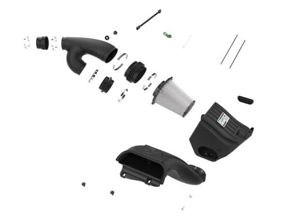 Quantum uses an integrated filter-to-housing design that attaches both components with four captive screws for a positive surface area seal and quick and easy install. Quantum's roto-molded housing features a five-rib industrial grade look for long lasting durability and aFe quality recognition. This system is equipped with our oil-free, 360-degree radial flow air filter with three layers of progressive synthetic media, providing optimum flow, protection and cleaning convenience. Specifically designed for the Quantum Series intake systems, the air filter features an injection molded base and top for lighter weight and rigidity. Captive screws are used to eliminate lost hardware and to securely fasten to the housing. The base includes a built-in, 3-angle velocity stack for smooth, even airflow. Quantum uses a dyno tuned, computer-designed intake tube to achieve optimum air flow. It's made from high impact, XLPE material for heat soak resistance and durability while maintaining a perfect fit. The included air scoop is designed to capture the coolest, freshest air from the top of the front grille to ensure increased air velocity into your Quantum air intake system for maximum performance and quicker throttle response. The Quantum Intake System includes silicone bellows couplings to absorb excessive engine movement and provide flexibility for a secure and easy install. Quantum intakes are designed with fewer parts for a quick and simple installation. This is a direct fit intake system that utilizes factory mounting points and requires no cutting or modifications. All clamps, couplings and hardware are included for a hassle-free installation.