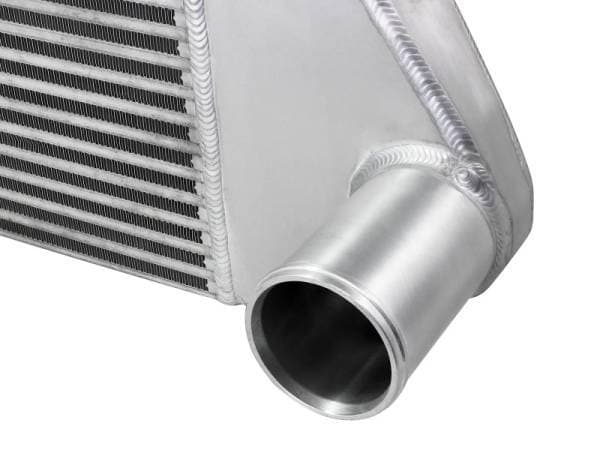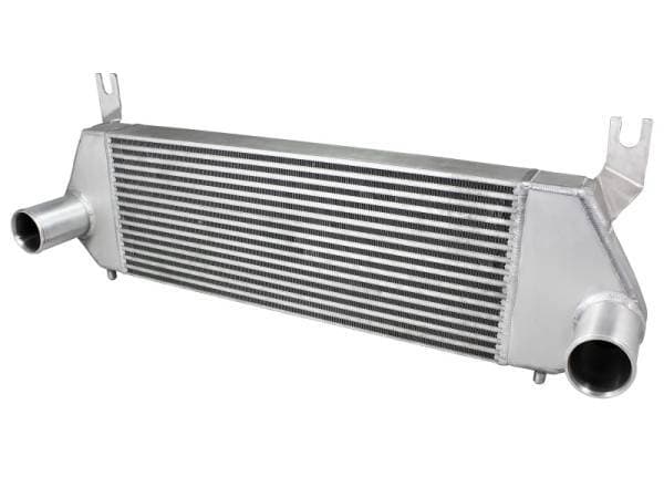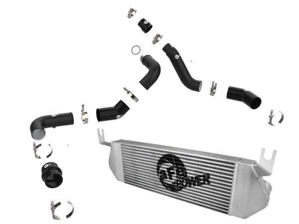 BladeRunner GT Series intercooler end tanks are constructed out of heavy-duty 3/16" TIG-welded aluminum plates. This BladeRunner GT Series Intercooler features a 3" bar and plate core that is extremely durable and allows for greater airflow over stock. This BladeRunner Intercooler and tube kit features billet aluminium inlet and outlets with a quick-connect adapter and an o-ring seal to ensure a leak-free fit while maintaining superior strength and durability. 100% TIG-welded for race proven strength and durability. TIG-welding provides the strongest welds, reducing stress cracks. The included tubes are powder coated wrinkle black and are constructed of mandrel-bent aluminum for maximum airflow. The smooth transition bends decrease turbulence and minimize pressure loss, increasing performance. Also featured are heavy-duty 5-ply silicone couplings and stainless-steel spring-loaded T-bolt clamps. This BladeRunner intercooler kit uses factory mounting locations for stability and easy installation. BladeRunner intercoolers are brush finished and along with charge pipes feature laser engraved aFe POWER logos.