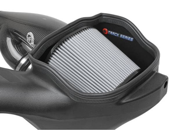 This 9” tall 360-degree radial flow air filter features a 5-1/2" flange and our oil-free Pro DRY S media with three layers of synthetic media for maximum convenience. Its progressive layering provides great filtration efficiency and dust holding capacity, while not requiring the use of oils. This media is best suited for street use. Its inverted top makes for more filter surface area, resulting in longer service intervals. The included massive air filter is surrounded by an open-element XLPE (Cross-linked Polyethylene) polymer housing that minimizes warm engine air for maximum performance. Its open design allows for easy viewing of the air filter, and an aggressive air intake sound. The built-in air intake scoop captures cold air directly from the top of the radiator support thanks to its huge opening. The lightweight tube is computer-designed to achieve maximum power gains while maintaining a perfect fit. Manufactured from 100% twill weave carbon fiber, it features zero fiberglass and is clear-coated for the highest quality construction. The computer designed system utilizes factory mounting locations, minimizing the use of unnecessary hardware and ensuring a perfect fit every time. Its innovative design makes for a hassle-free, direct bolt-on installation process that requires no cutting or drilling. Stainless-steel clamps are included for strength, and premium silicone couplings allow for ample flexibility. Track Series intakes are designed with fewer parts for a fast and easy installation.