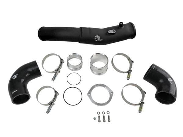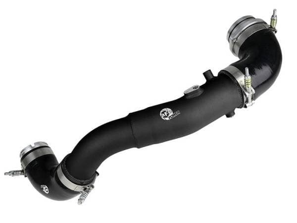Smooth transitions in the mandrel-bent aluminum tubing decrease turbulence and minimize pressure loss, increasing horsepower and torque. This tube kit includes high quality stainless-steel, spring loaded T-bolt clamps and heavy-duty 5-ply polyester reinforced silicone couplings. A factory-style billet aluminum quick-connect adapter with an O-ring seal ensures a leak-free fit while maintaining superior strength and durability. It's finished in wrinkle black powder coating with a unique laser-etched aFe POWER logo for a custom look.