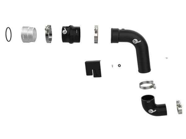 Smooth transitions in the mandrel-bent aluminum pipes decrease turbulence and minimize pressure loss, increasing horsepower and torque. This kit includes high-quality, stainless-steel, spring-loaded T-bolt clamps and heavy-duty, 5-ply, polyester reinforced silicone couplings. This charge pipe kit also features factory style billet aluminum quick-connect adaptor with o-ring seal to ensure a leak-free fit while maintaining superior strength and durability. Finished in wrinkle black powder coating with a unique laser-etched aFe POWER logo for a custom look.
