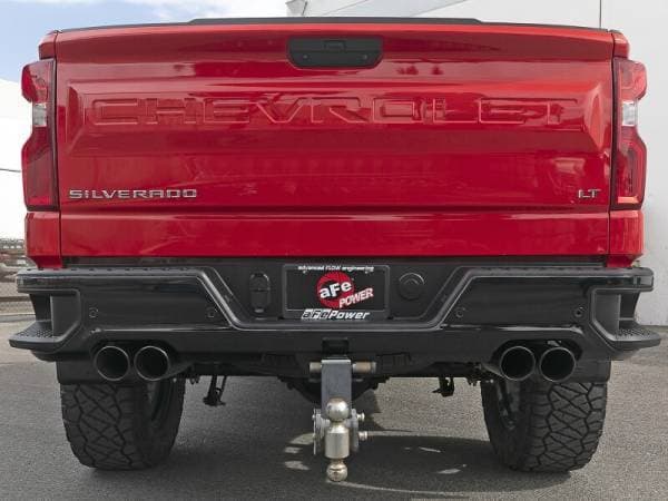 This dpf-back exhaust system is constructed of 3 IN mandrel-bent 304 stainless steel tubing for maximum strength and durability. Quad 4" black 304 stainless steel exhaust tips replace the factory tips for an aggressive, custom sport truck look. This system produces a mild sound unleashing all available horsepower and torque. Some cutting may be required, see instruction sheet for further information. Utilizing factory style hangers this system mounts directly to factory mounting locations for a hassle-free installation. State-of-the-art computer-aided design technology is utilized for precise vehicle fitment. 100% MIG-Welded for race-proven strength and durability.