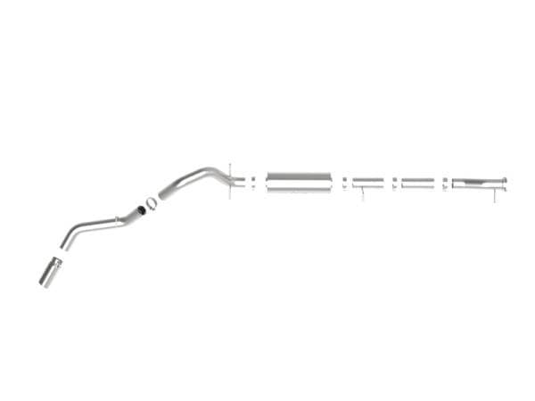 This cat-back exhaust system is constructed of 4" mandrel-bent 409 stainless steel tubing for maximum strength and durability. This system features a high-flow 409 stainless steel muffler, producing a deep sound. Finishing off this exhaust system is a 5" diameter polished 409 stainless steel intercooled clamp-on exhaust tip. The tip features an aFe POWER logo plate riveted on for a unique style. This system produces a deep sound unleashing all available horsepower and torque. Utilizing a factory style flange and hangers this system is a direct bolt-on system, which requires no cutting or modifications for a hassle-free installation. Utilizing state-of-the-art computer-aided design technology, this exhaust system is designed for custom, high tolerance factory fitment. 100% MIG-Welded for race-proven strength and durability.