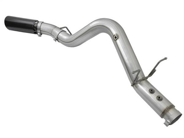 Simple Installation All systems use factory mounting locations providing stability and hassle-free installation. Leak-Free Seal: High quality band clamps are included for a complete 360 degree sealing surface. OE Fit: OE-style bayonet hangers are used to maintain a stable pipe location during high vibration and high heat conditions. The bayonet tip holds the hanger bushing in place for an OE-style fit that does not change with time. Flow and Performance: This Mach FORCE-Xp exhaust system is constructed of 4" mandrel-bent aluminized tubing for maximum flow. Smooth transition bends allow for low turbulence, increasing horsepower, torque and lowering EGT's. 6" Diameter Black Intercooled Tip: Finishing off the exhaust is a 6" diameter, black, stainless steel slash cut tip with intercooling vents designed to reduce exhaust gas temperatures at the tailpipe. A unique stainless steel laser-cut aFe Power logo plate is riveted on for an aggressive style.