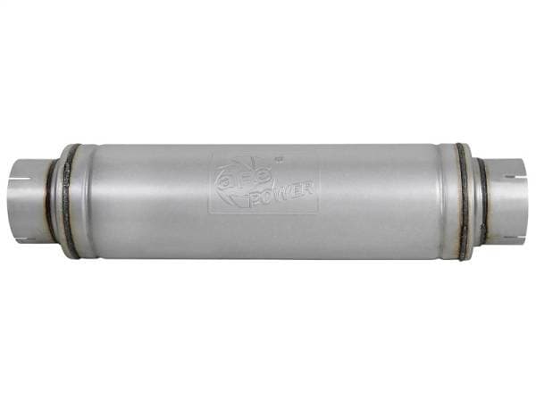 The aFe Universal fit Aluminized Steel Performance Muffler is designed to provide a deep, throaty, powerful sound on acceleration, but maintain a smooth sound at idle. This muffler is constructed of brushed finished aluminized steel and uses a straight through perforated core with heat resistant packing to reduce backpressure and maximize exhaust flow. You will see increased performance and improved throttle response over the factory exhaust. Also featuring a stamped aFe Power logo for an aggressive style. Muffler Specifications: 7" Center Inlet /Outlet, 24"L Body Diameter. All aFe exhaust systems are engineered and manufactured in our Corona, California manufacturing facility.