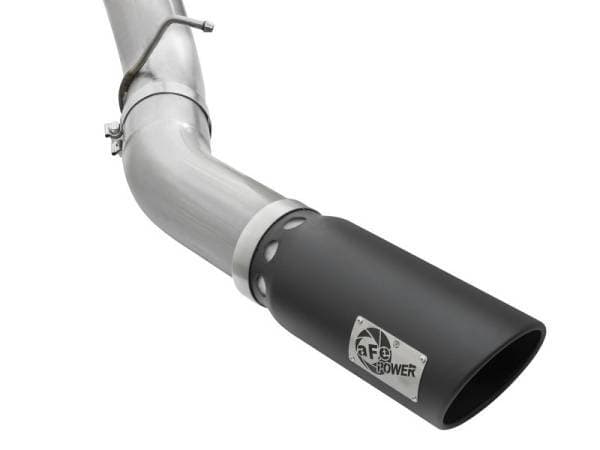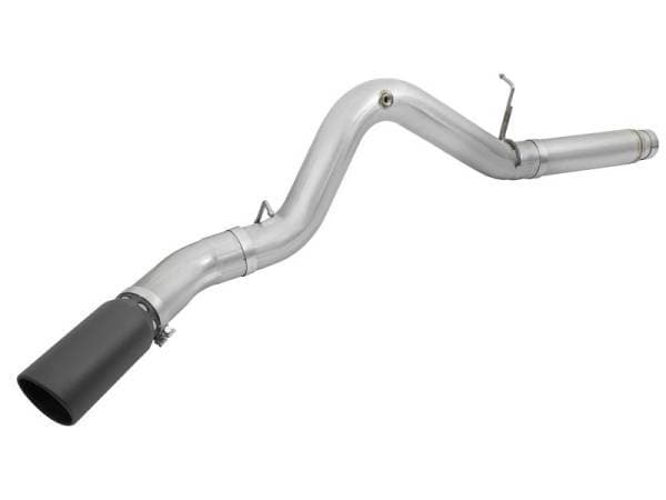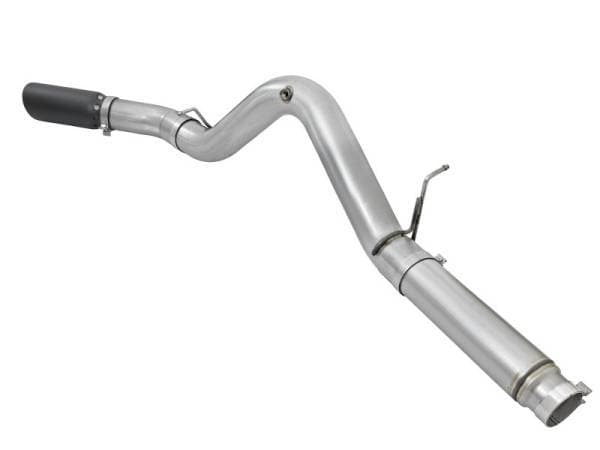 Interested in a new exhaust system for your LML Duramax? Check out the ATLAS DPF-Back exhaust system by aFe. This system is constructed from 5" mandrel-bent aluminized steel tubing and uses high quality band clamps and OE-style bayonet hangers. This unit uses all factory mounting locations to provide a quick, hassle-free installation. Also included in this exhaust system is a massive 6" diameter, wrinkle-black powder-coated 304 stainless steel tip with a laser-cut stainless steel aFe power badge. ATLAS exhaust systems are the perfect combination of performance, fit and value. Simple Installation: All systems use factory mounting locations providing stability and hassle-free installation. Leak-Free Seal: High quality band clamps are included for a complete 360 degree sealing surface. OE Fit: OE-style bayonet hangers are used to maintain a stable pipe location during high vibration and high heat conditions. The bayonet tip holds the hanger bushing in place for an OE-style fit that does not change with time. Flow and Performance: This ATLAS exhaust system is constructed of 5" mandrel-bent aluminized steel tubing for maximum flow. Smooth transition bends allow for low turbulence, increasing horsepower, torque and lowering EGT's. 6" Diameter Black Intercooled Tip: Finishing off the exhaust is a 6" diame ter, black, stainless steel slash cut tip with intercooling vents designed to reduce exhaust gas temperatures at the tailpipe. A unique stainless steel laser-cut aFe Power logo plate is riveted on for an aggressive style.
