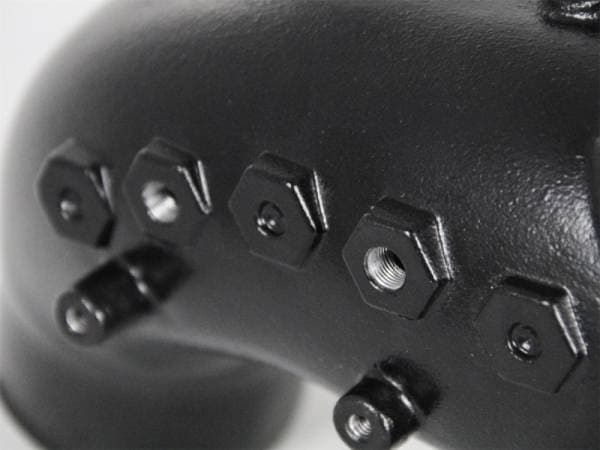 The BladeRunner 3.5" intake manifold represents the next generation in intake manifold design. The BladeRunner intake manifold uses the patented MDV (Multiple Directional Vane) technology to guide the air through the manifold maximizing air flow. Constructed out of cast A356-T6 aluminum and using a proprietary internal bolt design helps increase air flow and provide a solid seal void of leaks or deformities. The 3.5" BladeRunner intake manifold comes with 5 ports (2 are tapped at 1/8" NPT) built-in for nitrous injection, gauges and other accessories used by hardcore enthusiasts. In recent testing the BladeRunner intake manifold outflowed the factory intake by 68%. This intake is specifically designed to provide increased intake volume and air velocity for the hardcore diesel racer and enthusiast.