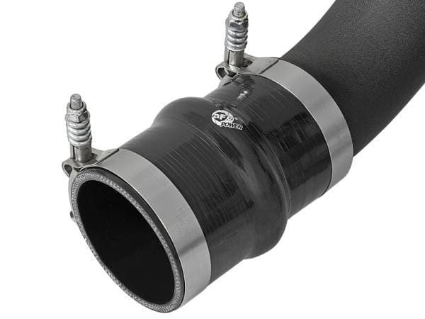 Perfect Fit: Utilizes the factory mounting locations to provide stability for a hassle-free installation. Includes high quality stainless steel clamps and heavy-duty 5-Ply couplings for strength. Fits OEM intercooler. Flow and Performance: This aFe Power int ercooler tube is constructed from 3" (Hot Side) mandrel-bent aluminum tubing for maximum flow then, powder-coated for a nice finish. The high-temp wrinkle-black powder-coating also insulates the tube from engine heat and protects the tube from corrosion. The smooth transition bends decrease turbulence, minimize pressure loss, while increasing horsepower and torque. This tube is also equipped with one 1/8" NPT port which is provided for a sensor or injection. aFe Badging: A unique laser-cut aFe power logo plate is welded-on for an aggressive style.