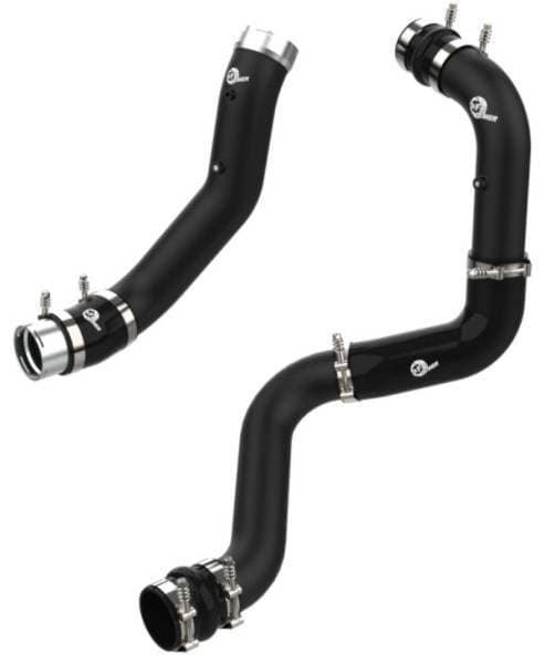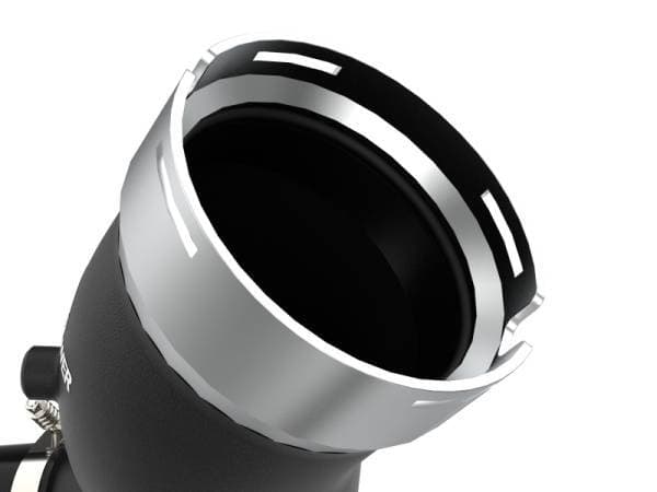 Smooth transitions in the mandrel-bent aluminum tubing decrease turbulence and minimize pressure loss, increasing horsepower and torque. The BladeRunner charge pipe kit provides a smooth transition between the turbo and the engine for lower operating temperatures and increased power. This charge pipe kit includes high-quality, stainless-steel, spring-loaded T-bolt clamps and heavy-duty, 5-ply, polyester reinforced silicone couplings. This pipe kit features factory style billet aluminum quick-connect adaptors with o-ring seals to ensure a leak-free fit while maintaining superior strength and durability. Finished in wrinkle black powder coating with a unique laser-etched aFe power logo for a custom look.