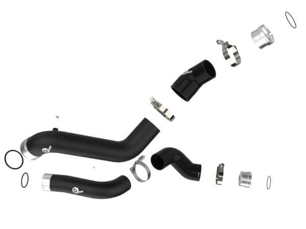 BladeRunner Charge Pipes provides a smooth transition between the turbo and the engine for lower operating temperatures and increased power. This kit includes high-quality, stainless-steel, spring-loaded T-bolt clamps and heavy-duty, 5-ply, polyester reinforced silicone couplings, and factory style billet aluminum quick-connect adapters with o-ring seals ensure a leak-free fit while maintaining superior strength and durability. The black powder coating finish provides a clean stealthy look while providing a lasting protection and heat resistance.