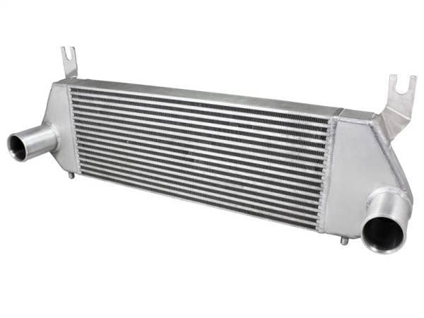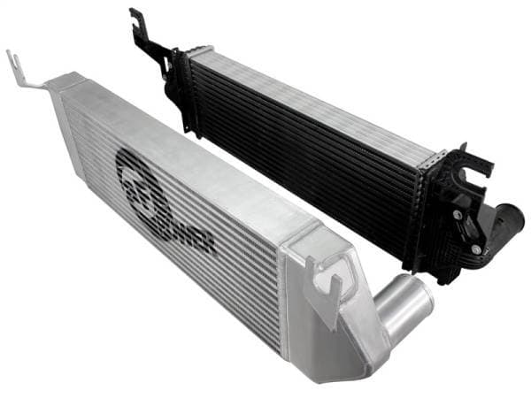 Bladerunner Intercoolers represent the next generation of intercoolers. The Bladerunner intercoolers utilize a 3 in. bar and plate design that out performs OE style tube and fin core designs. The end tanks are constructed out of 3/16 in. TIG welded aluminum plate tanks that incorporate three multi-directional vanes that efficiently direct air flow through the entire core for maximum cooling. The Bladerunner intercooler also comes with 4 1/8 in. pre-tapped ports for easy gauge installation as well as other auxiliary input options. Tested at 200psi which is perfect for the high boost applications. In recent testing the Bladerunner intercooler produced a 200 deg. temperature drop and a 100 deg. EGT drop as well as increasing air flow by 30 percent. Dont waste your time and money on modified factory intercooler. Invest in the aFe Bladerunner intercooler. the most sophisticated intercooler design on the planet.