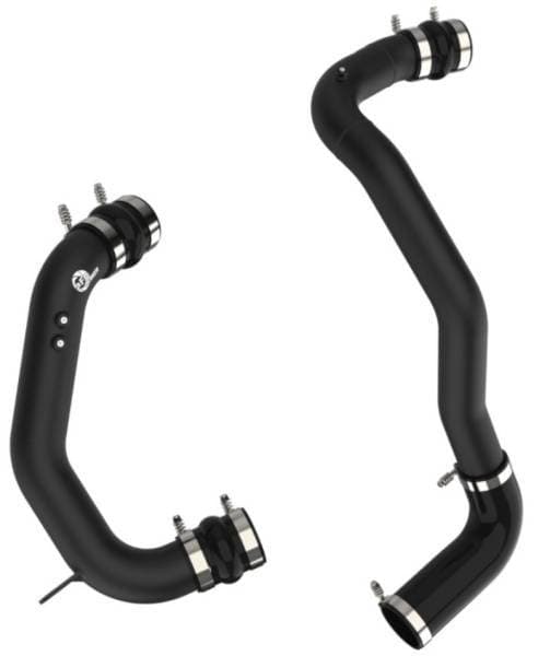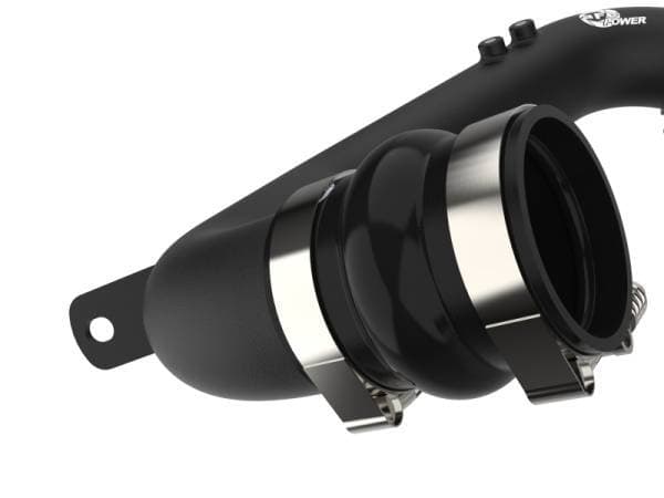 Smooth transitions in the mandrel-bent aluminum tubing decrease turbulence and minimize pressure loss, increasing horsepower and torque. The BladeRunner charge pope kit provides a smooth transition between the turbo and the engine for lower operating temperatures and increased power. This charge pipe kit includes high-quality, stainless-steel, spring-loaded T-bolt clamps and heavy-duty, 5-ply, polyester reinforced silicone couplings for superior strength and durability. Finished in Wrinkle Black powder coating with a unique laser-etched aFe power logo for a custom look.