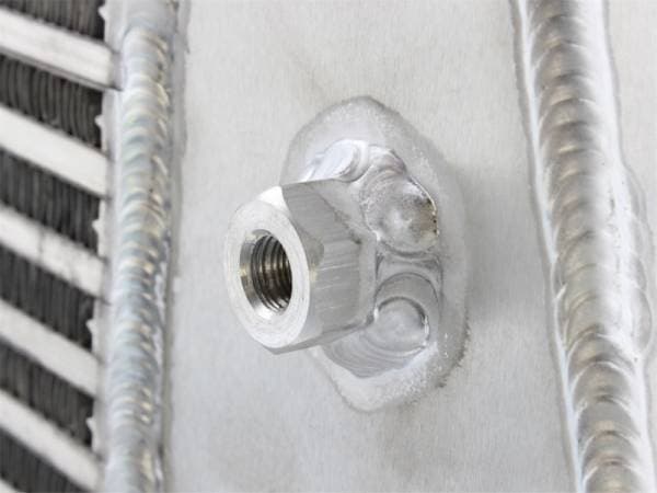 Bladerunner Intercoolers represent the next generation of intercoolers. The Bladerunner intercoolers utilize a 3 in. bar and plate design that out performs OE style tube and fin core designs. The end tanks are constructed out of 3/16 in. TIG welded aluminum plate tanks that incorporate three multi-directional vanes that efficiently direct air flow through the entire core for maximum cooling. The Bladerunner intercooler also comes with 4 1/8 in. pre-tapped ports for easy gauge installation as well as other auxiliary input options. Tested at 200psi which is perfect for the high boost applications. In recent testing the Bladerunner intercooler produced a 200 deg. temperature drop and a 100 deg. EGT drop as well as increasing air flow by 30 percent. Dont waste your time and money on modified factory intercooler. Invest in the aFe Bladerunner intercooler. the most sophisticated intercooler design on the planet.
