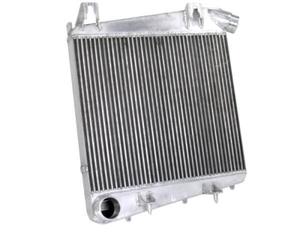 Bladerunner Intercoolers represent the next generation of intercoolers. The Bladerunner intercoolers utilize a 3 in. bar and plate design that out performs OE style tube and fin core designs. The end tanks are constructed out of 3/16 in. TIG welded aluminum plate tanks that incorporate three multi-directional vanes that efficiently direct air flow through the entire core for maximum cooling. The Bladerunner intercooler also comes with 4 1/8 in. pre-tapped ports for easy gauge installation as well as other auxiliary input options. Tested at 200psi which is perfect for the high boost applications. In recent testing the Bladerunner intercooler produced a 200 deg. temperature drop and a 100 deg. EGT drop as well as increasing air flow by 30 percent. Dont waste your time and money on modified factory intercooler. Invest in the aFe Bladerunner intercooler. the most sophisticated intercooler design on the planet.