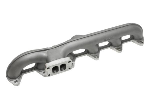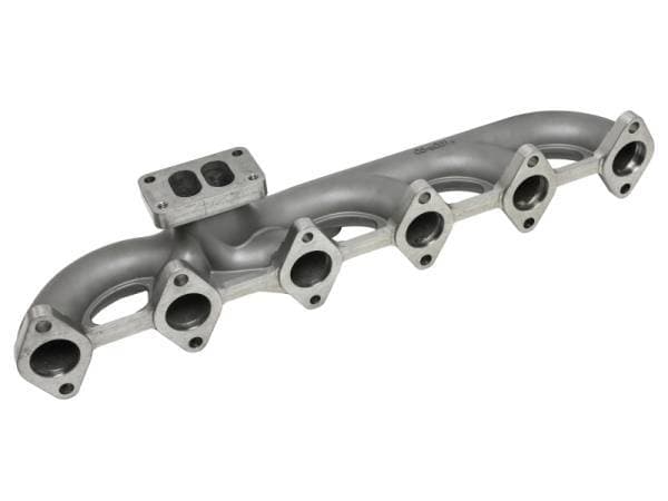 Eliminate the costly exhaust manifold cracks prevalent in the factory exhaust manifold. The aFe Bladerunner exhaust manifold for the popular 5.9L Dodge Ram Cummins sets the new standard. Constructed out of cast 304 stainless steel with a reinforcing rib for strength along the flange and ultra-thick wall flange at the port. The Bladerunner exhaust manifold out flowed the factory exhaust by 23-percent improving exhaust flow, performance and throttle response. This manifold also features 2 EGT probe ports, thick wall design for increased strength (0.25" vs 0.15" for the stock unit), matched ports and has a merged runner design to maximize maximize exhaust flow. Once you install this awesome exhaust manifold, you will feel improved turbo spool up times, improved throttle response and performance.
