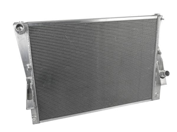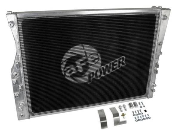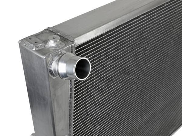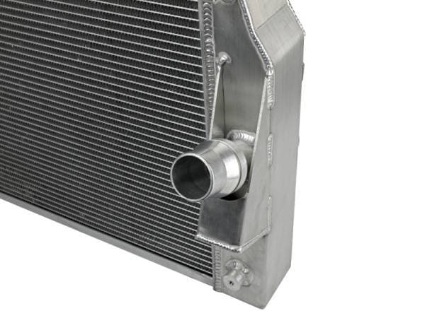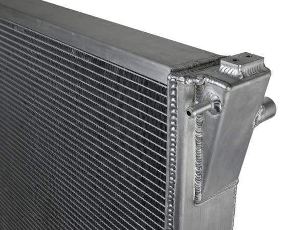This BladeRunner Street Series Radiator features a 2-3/4 IN thick tube and fin core which provides greater heat dissipation and better coolant flow than the factory radiator for optimum cooling efficiency. The fabricated end tanks are constructed out of 1/8" aluminum plates for strength and durability. The upper mounts have been configured to provide maximum strength and durability. With billet aluminum mounting locations and heavy-duty stainless steel brackets, this radiator is protected from the abuse of rock-crawling and street hauling. Billet aluminum inlet and outlet for long-lasting reliability. 100% TIG-welded for proven strength and durability. BladeRunner Street Series Radiators include a brass drain valve with fitting to easily connect a hose for draining coolant. Utilizes the factory mounting locations to provide stability for a hassle-free installation. Brushed aluminum finish with an aFe POWER logo painted on the front.