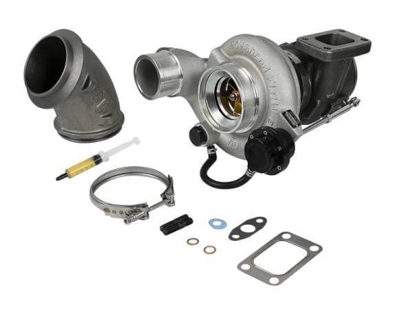 Specifications: Compressor Inducer - 60 mm/Trim: 45 Compressor Exducer - 89.7 mm Turbine Inducer - 65 mm Turbine Exducer - 58 mm Turbo Housing: 12 CM2. Billet Wheel: The compressor features a gold anodized 7/14 bladed billet aluminum compressor wheel that is lighter and stronger than the stock cast wheel to help provide quicker "spool-up" and higher air flow than the stock turbo. Compressor: The compressor features a light-weight billet aluminum compressor wheel with a 60mm inducer and 89.7mm exducer to improve turbo spool-up, handle high wheel speeds, and boost pressures. Also included is a CNC-machined, black anodized billet adjustable aluminum wastegate actuator. Direct Replacement: This turbo can be installed on 2003-2007 model years as a direct bolt-on replacement. All connections to the vehicle are compatible with the OE geometry, resulting in a quick and reliable connection. Maximum gains are achieved from fuel system upgrades, either electronic or mechanical.
