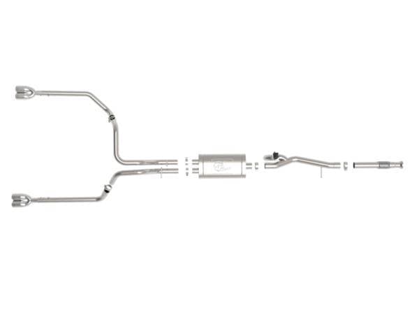 This system produced gains of up to +5 HP and +6 lbs. x Ft. TQ., as measured on our in-house dyno. This cat-back exhaust system is constructed of 3 IN - 2-1/2 IN mandrel-bent 304 stainless steel tubing for maximum strength and durability. This system features a high-flow stainless steel, producing an aggressive sound. Muffler finish may vary. Finishing off this exhaust system are dual 3-1/2 IN diameter polished 304 stainless steel exhaust tips. The tips features a laser etched aFe POWER logo for a unique style. This system produces an aggressive sound unleashing all available horsepower and torque. Utilizing factory style hangers this system is a direct bolt-on system, which requires no cutting or modifications for a hassle-free installation. This cat-back exhaust system uses a heavy duty flex pipe with an internal interlock liner for added strength and durability. This kit includes key fob remotes, control module, valve motor, and all necessary wiring. It's a simple installation, requiring no cutting of any wires or interference of the automobile's electronics. This system features an electronically controlled exhaust cut-out valve to quickly switch between exhaust tones at the push of a button. Utilizing state-of-the-art computer-aided design technology, this exhaust system is designed for custom, high tolerance factory fitment. 100% MIG-Welded for race-proven strength and durability.