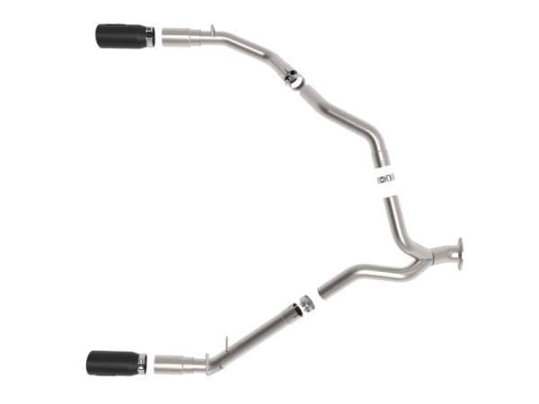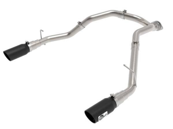 This DPF-back exhaust system is constd of 3" mandrel-bent 409 stainless steel tubing for maximum strength and durability. Finishing off this exhaust system are dual 5" diameter black 304 stainless steel clamp-on exhaust tips. The tips features an aFe POWER logo plate riveted on for a unique style. Utilizing a factory style flange and hangers this system is a direct bolt-on system, which requires no cutting or modifications for a hassle-free installation. Utilizing state-of-the-art computer-aided design technology, this exhaust system is designed for custom, high tolerance factory fitment. 100% MIG-Welded for race-proven strength and durability.
