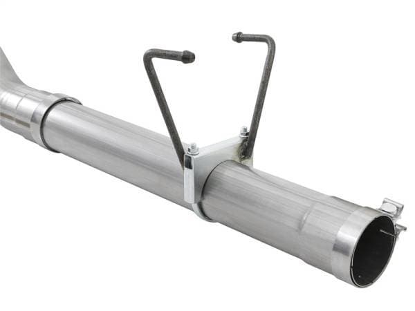 Gain 22% more exhaust flow for improved performance and sound. This DPF-back exhaust is 100% hand MIG-welded, mandrel bent, 4" 409 stainless steel tubing for strength and durability and is finished off with a 5" intercooled, polished exhaust tip to reduce EGT's. This system utilizes factory mounting locations, and includes high quality hardware for a quick, hassle-free installation. Stainless Steel Construction This DPF-Back is constructed of 100% hand MIG-welded, mandrel bent, 4" 409 stainless steel tubing for strength and durability. 5" Diameter Exhaust Tip: Finishing off this exhaust is a 5" diameter slash cut, stainless steel tip with intercooling vents to reduce EGT's at the tailpipe and are badged with laser-cut aFe POWER plates riveted on. Installation is a Snap This system uses factory mounting locations providing stability and hassle-free installation. High quality OE style band clamps are used for a complete 360 degree sealing surface. Flow and Performance This exhaust system is constructed of 4" mandrel-bent 409 stainless steel tubing for maximum flow and durability. Smooth transition bends allow for low turbulence, increasing horsepower, torque and lowering EGT's.