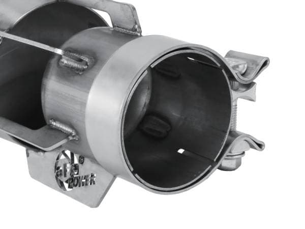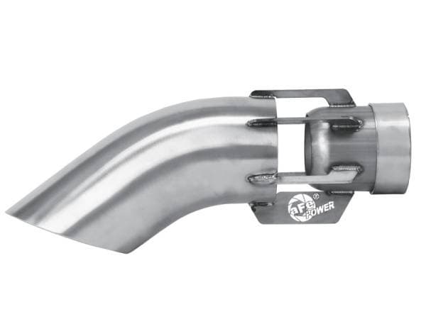 This direct-fit clamp-on tip is constructed from 304 stainless steel and features a brushed finish for corrosion resistance for long lasting good looks. Designed to fit 3" exhaust systems; 3" inlet x 4" outlet and 15" inch length. This tip features an aFe POWER logo for an aggressive, custom look. A high quality stainless steel clamp is used for a complete 360 degree sealing surface. The unique Patented Design of this intercooled exhaust tip will reduce exhaust temperatures by as much as 40%