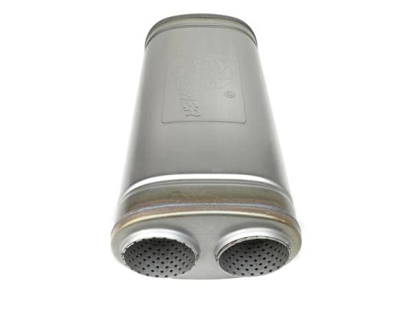 Constructed of 409 stainless steel for long lasting strength and durability. Designed for exhaust gasses to travel through the heat resistant perforated core for a remarkable tone. Features an aFe POWER logo stamped onto the muffler for quality, brand authenticity