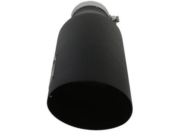 The aFe stainless steel wrinkle black powder-coated exhaust tip is designed to fit 4" exhaust systems. A stainless steel band clamp ensures a very secure grip. Finally, this exhaust tip features a stainless steel laser-cut logo plate that stands out against the black tip for an aggressive style. With a 4" inlet, 7" outlet and a massive 18" inch length, this single-walled, slash cut tip is a nice compliment for any 4" exhaust system.