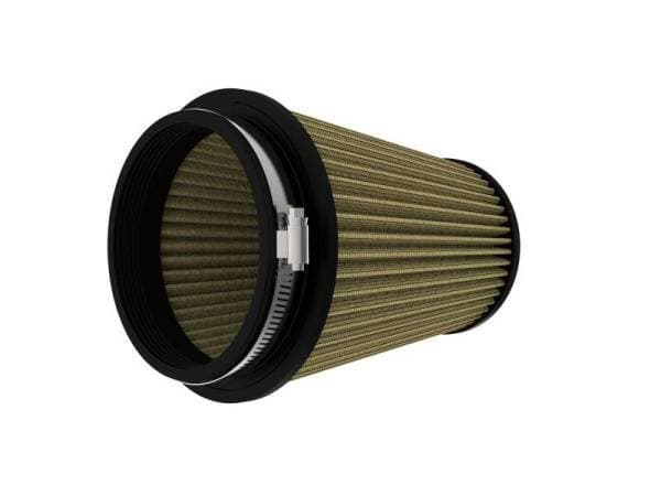 This filter features seven layers of composite media for maximum protection. The patented combination of oiled cotton gauze with synthetic material allows this media to thrive in the dustiest and dirtiest environments imaginable. Pro-GUARD 7 filters are easily recharged with aFe POWER CLEANER and gold air filter oil. aFe POWER performance air filters use a rounded, evenly spaced pleat design which allows for more usable filter surface area, providing increased flow and greater dust holding capacity. This aFe POWER performance air filter is constructed with a polyurethane base and top. Unlike other materials that degrade after repeated heat cycles in an engine bay, polyurethane maintains its original molded shape.