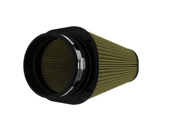 This filter features seven layers of composite media for maximum protection. The patented combination of oiled cotton gauze with synthetic material allows this media to thrive in the dustiest and dirtiest environments imaginable. Pro-GUARD 7 filters are easily recharged with aFe's POWER CLEANER and gold air filter oil. aFe POWER performance air filters use a rounded, evenly spaced pleat design which allows for more usable filter surface area, providing increased flow and greater dust holding capacity. Its surrounded by expanded metal that provides additional protection, preventing filter collapse and direct impact. This aFe POWER performance air filter is constructed with a polyurethane base and top. Unlike other materials that degrade after repeated heat cycles in an engine bay, polyurethane maintains its original molded shape. Utilizing the filter's retention groove, the filter locks into select Magnum FORCE Series housings with zero hardware. This simple design allows for easy filter maintenance and replacement.