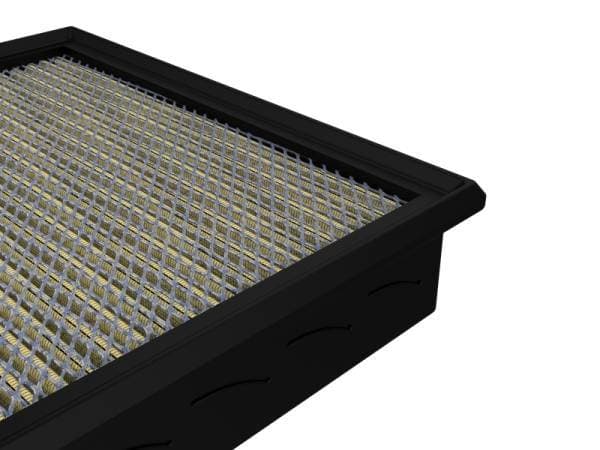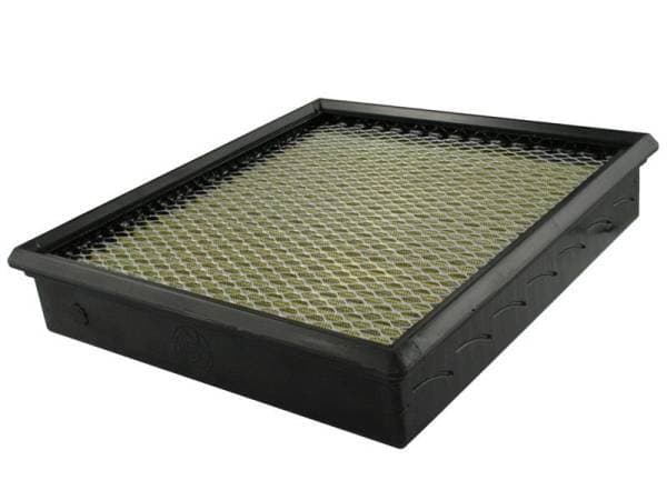 Pro GUARD7 Media: This filter features 5-layers of progressively Finer Oiled Cotton Gauze and 2-layers of Finer Porosity Synthetic non-woven media for highest filtration efficiency for extreme dust environments. (US PAT 06811588) Rounded Open Pleats: aFe performance air filters use a rounded, evenly spaced pleat design which produces more usable filter surface area for increased flow and greater dust holding capacity. Progressive Bump Seal: This pliable sealing surface conforms to even the most uneven filter housing. This design eliminates the use of gaskets or sealants. The soft urethane construction always goes back to its original form so you will never compress the bump seal. This makes for a perfect filter fit and sealing surface every time. Full Urethane Housing: aFe Power performance air filters are constructed using full 360 degree urethane frames. This construction allows for a proper factory style fit with excellent filter strength.