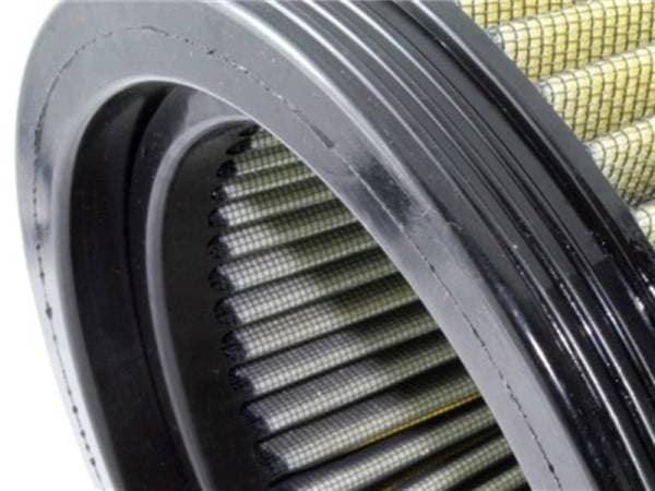 Pro GUARD7 Media: This filter features 5-layers of progressively Finer Oiled Cotton Gauze and 2-layers of Finer Porosity Synthetic non-woven media for highest filtration efficiency for extreme dust environments. (US PAT 06811588) Rounded Open Pleats: aFe performance air filters use a rounded, evenly spaced pleat design which produces more usable filter surface area for increased flow and greater dust holding capacity. Progressive Bump Seal: This pliable sealing surface conforms to even the most uneven filter housing. This design eliminates the use of gaskets or sealants. The soft urethane construction always goes back to its original form so you will never compress the bump seal. This makes for a perfect filter fit and sealing surface every time. Full Urethane Housing: aFe Power performance air filters are constructed using polyurethane on top and bottom. This construction allows for a proper factory style fit with excellent filter strength.
