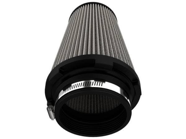 This filter features three layers of oil-free synthetic media and requires no oil during maintenance to provide maximum convenience. Its progressive layering provides great filtration efficiency and dust holding capacity. This media is best suited for street and light off-road use. Pro DRY S filters are easily recharged with aFe's POWER CLEANER. aFe POWER performance air filters use a rounded, evenly spaced pleat design which allows for more usable filter surface area, providing increased flow and greater dust holding capacity.This aFe POWER performance air filter is constructed with a polyurethane base and top. This construction allows for a proper factory style fit with excellent filter strength. Its inverted top makes for more filter surface area, resulting in longer service intervals. Utilizing the filter's retention groove, the filter locks into most Stage-2 housings with zero hardware. This simple design allows for easy filter maintenance and replacement.