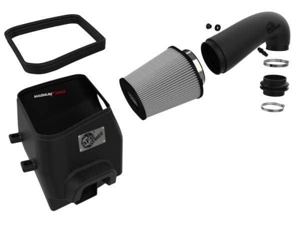 This 9” tall 360-degree radial flow air filter features a 5-1/2" flange and our oil-free Pro DRY S media with three layers of synthetic media for maximum convenience. Its progressive layering provides great filtration efficiency and dust holding capacity, while not requiring the use of oils. This media is best suited for street and light off-road use. The included massive air filter is surrounded by an open-element XLPE (Cross-linked Polyethylene) polymer housing that minimizes warm engine air for maximum performance. Its open design allows for easy viewing of the air filter and delivers an aggressive Air Intake sound. It utilizes the vehicles OE air inlet with no additional hardware. This system features a high quality, computer-designed, dyno-tuned intake tube to achieve maximum power gains while maintaining a perfect fit. Its XLPE material is heat soak resistant and extremely durable. The computer designed system utilizes factory mounting locations, minimizing the use of unnecessary hardware and ensuring a perfect fit every time. Its innovative design makes for a hassle-free, direct bolt-on installation process that requires no cutting or drilling. Its revolutionary design, featuring our patent pending filter-to-housing interface, uses half the number of parts of a traditional cold air intake system.