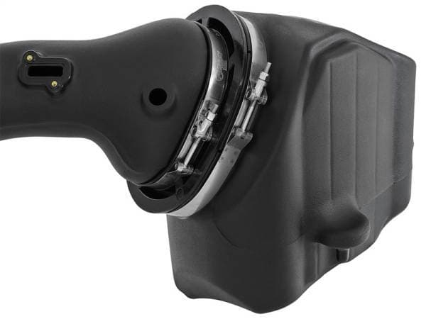 Unique One-Piece High Quality Housing w/ Auxiliary Scoop: The smooth one-piece high quality sealed housing with auxiliary air scoop is used to eliminate the use of multiple-piece housings and ensure the coolest air intake charge available. A large, clear sight window is used for a hassle-free filter inspection and an aggressive style. A urethane plug is also included if you wish to block off the auxiliary air inlet. (US PAT 9440175) For Filter-to-Housing Interface. High Quality Tube: This system uses a high quality, dyno-tuned intake tube to achieve maximum power gains while maintaining a perfect fit. Huge 10-Layer Performance Air Filter: The Momentum HD inta ke is designed around a massive 1,000cfm performance 360 degree radial flow air filter with 10-layers of progressive cotton media providing 99.59% cumulative efficiency (independently tested). The unique air filter to housing interface (patent pending) allows for maximum filter size which increases the available air volume while simplifying the installation process. The air filter is wrapped in reinforced metal providing maximum strength to prevent filter collapse. Premium Hardware: Premium clamps and a silicone elbow coupling are used for strength and flexibility while also providing the most secure installation available. Momentum intakes are designed with fewer parts for a quick and simple installation. Also available and sold separately is a Dynamic Air Scoop (P/N 54-73006-S) to direct more cold air for the front of the truck into the intake housing.
