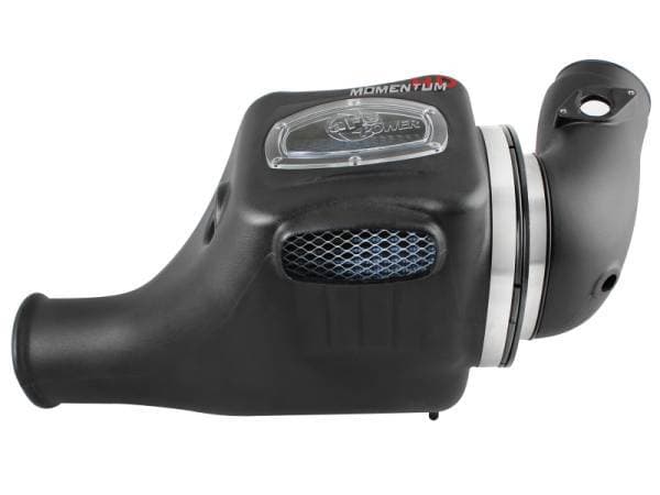 Bringing you the next generation of intakes, the Momentum HD sealed air intake system is designed using the most up-to-date engineering tools and techniques to provide you with the perfect blend of power and protection. This intake system is superior in every way. From the one-piece sealed housing with a built-in sight window to the massive 1,000 cfm air filter and premium hardware, we spared no expense to give you the best intake on the market. Unique One-Piece Housing: The smooth one-piece sealed housing with auxiliary air scoop is used to eliminate the use of multiple-piece housings and ensure the coolest air intake charge available. A urethane plug is also included for extreme conditions when you want to block the auxiliary air scoop. A large, clear sight window is used for a hassle-free filter inspection. Roto-mold Tube: This System uses a CAD designed, dyno-tuned, roto-mold intake tube to achieve maximum power gains while maintaining a perfect fit. Huge 10-Layer Pro 10R Performance Air Filter: This Momentum HD is designed around a massive 1,000 cfm 360 degree radial flow performance air filter with 10-layers of progressive cotton gauze oiled media providing 99.59% cumulative efficiency (independently tested). The unique air filter to housing interface (PATENT PENDING) allows for maximum filter size which increases the available air volume while simplifying the installation process. The air filter is wrapped in reinforced metal providing maximum strength to prevent filter collapse. Premium Hardware: Premium stainless steel T-bolt clamps are used for strength and durability while also providing the most secure installation available. Momentum HD intakes are designed with fewer parts for a quick and simple installation. Proven Results: After a rigorous design and testing phase, the results are in. The Momentum HD intake system outflows the factory intake by 38% and resulted in 16 additional horsepower and 26 lbs. x ft. torque.