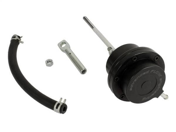 aFe Power introduces an all new BladeRunner GT Series Wastegate Actuator upgrade for Ford Diesel Trucks 99.5-03 with V8-7.3L (td) engine. The GT Series wastegate actuator is constructed out of light weight black anodized CNC 6061 billet aluminum for maximum strength and style, with locking jam nut for precise boost pressure settings. This unit come preset to factory settings and require no modification of turbocharger for a hassle-free installation. 6061 Billet Aluminum Construction: Constructed from 6061 billet aluminum precision machined for light weight, high strength and perfect fit and finish. Direct OE Fitment: Bolts up to factory mounting locations and requires no modification to the turbocharger for a hassle-free installation. Heavier Spring & Larger Diaphragm: Keeps wastegate valve seated longer which maintains power, torque in mid-range acceleration and prevents wastegate creep. aFe Badging: The wastegate comes with a unique laser-etched aFe Power logo for an aggressive style. Hassle-Free Installation: This is a direct bolt-on upgrade, all necessary hardware included with all connections to the turbo compatible with the OE geometry for a quick, hassle-free installation. Emissions Disclaimer: This product does not require a CARB EO#.