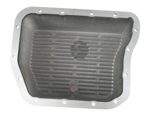 aFe POWER Pro Series deep transmission pan brings performance engineering to the protection of your trucks transmission. This transmission pan has additional capacity for 3 to 4 more quarts over stock at the factory line, a magnetic drain plug and a 1/8" NPT port for your temperature sensor. Built-in internal and external fins transfer heat from the fluid to the outside air for maximum cooling. This transmission pan is constructed out of durable die-cast A380 aluminum with reinforced ribs and a wrinkle black powder-coating for maximum strength and styling.