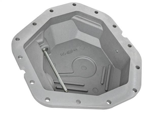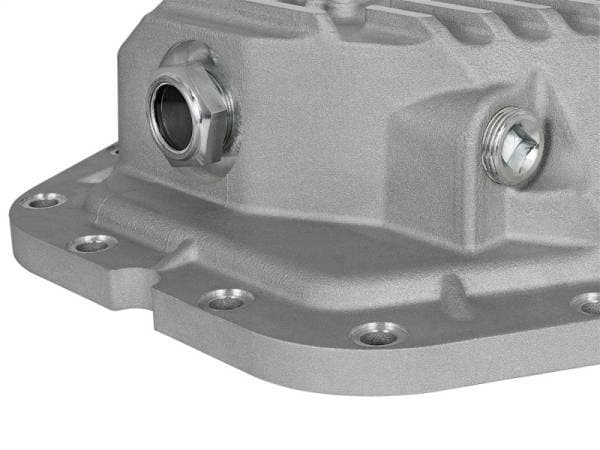aFe Power's new rear differential cover brings performance engineering to the protection of your axle's differential. This differential cover is constructed out of durable A356-T6 cast aluminum with reinforcing ribs for maximum strength. Mounting hardware is included for a hassle-free installation. A calibration plug set to the factory level prevents overfilling of the differential. A magnetic drain plug and a deep reach magnetic fill plug are provided for maximum protection. This cover has a raw finish with machined fins for a distinctive look. 5 Quart Gear Oil Capacity: This cover has about a 5 quart gear oil capacity at the factory fill level, factory cover holds about 4 quarts. Built-in Cooling Fins: Built-in internal and external cooling fins increase surface area to maximize cooling of the differential oil. Magnetic Drain/Fill Plug: This system incorporates a magnetic drain and deep reach fill plug that captures loose particles for maximum rear-end protection. Oil Level calibration plug: A 1/8" NPT calibration plug is set to the factory fluid level which eliminates accidental overfilling.