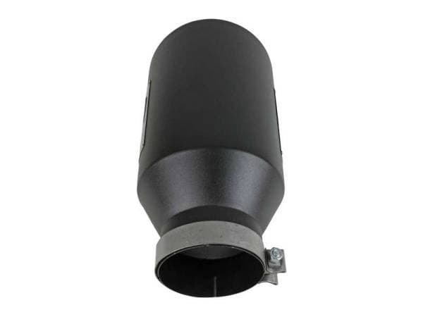 This direct-fit clamp-on tip is constructed from 304 stainless steel and features a black finish for corrosion resistance for long lasting good looks. Designed to fit 5" exhaust systems; 5" inlet x 8" outlet and 15" inch length. This tip features an aFe POWER logo for an aggressive, custom look. A high quality stainless steel clamp is used for a complete 360 degree sealing surface. This product does not require a CARB EO#.