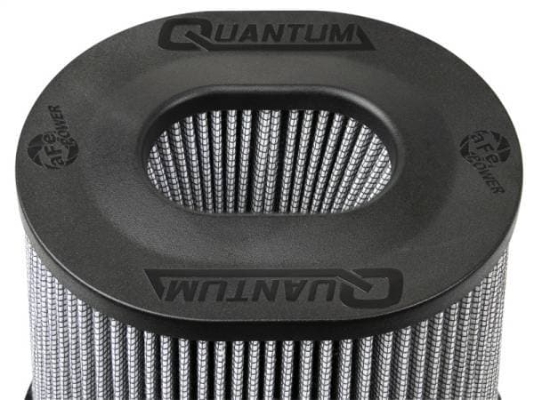 Quantum Pro DRY S air filter by aFe Power is specifically designed for the Quantum Series cold air intake systems and feature an injection molded base and top for lighter weight and rigidity. The newly designed base includes a built-in, 3-angle velocity stack for smooth, even airflow. The Quantum Pro DRY S filter is a 360-degree radial flow air filter with oil-free, 3-layer progressively finer porosity synthetic media for optimum flow, filtration and convenience. Captive screws are included to eliminate lost hardware and to securely fasten to the Quantum Intake system housing.