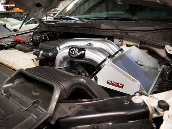 The aFe POWER Pro 5R air filters are pre-oiled and are 8” tall with 360-degree radial flow performance and five layers of progressively fine cotton gauze media for maximum airflow and protection. They provide your engine with the largest amount of high-flowing air, usually resulting in the highest power gains out of all our filter media options. This media is perfect for street and/or track use. Dual one-piece 3-1/2" mandrel-bent brushed aluminum intake tubes direct unrestricted airflow from the massive filters to the turbos for more horsepower and torque. aFe developed this lightweight brushed aluminum heat shield to snap onto the top of the lower half of the factory airbox to provide a hassle-free installation utilizing factory mounting locations. A brushed aluminum cover is used to finish off this intake and add a sense of style to your engine bay. Premium hardware and clamps are used to securely mount the high flow air filters and the intake tubes.
