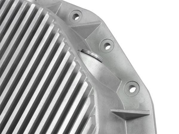 aFe Powers new rear differential cover brings performance engineering to the protection of your axles differential. This differential cover is constructed out of durable die cast A380 aluminum with reinforced ribs and wrinkle black powder coating for maximum strength and styling. This cover comes with all necessary hardware and includes an o-ring for a leak free seal. This cover has about a 3-1/2 quart lube capacity at the factory line. Built-in internal and external fins transfer heat from the fluid to the outside air for maximum cooling. This system incorporates a large magnetic drain and fill plug that captures loose particles for maximum rear-end protection. Pre-installed large oil level sight glass with calibration plug set to the factory fluid level to eliminate overfilling.