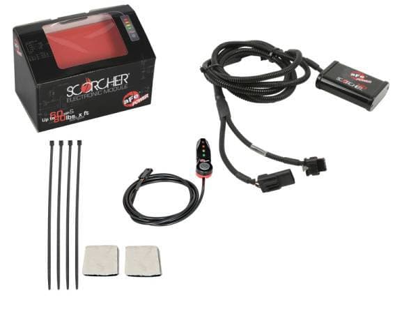 A simple 30 minute install will give you a huge increase in power. The aFe POWER SCORCHER HD Module includes a high quality case & wire harness with factory style connectors for an easy plug & play installation. A LED light switch provides In-Cabin On-The-Fly power adjustments. The 4-Power settings are adjustable with one button and the LED light represent the settings: Stock (Green), Sport (Yellow), Sport+ (Orange) and Race (Red) . This performance module improves vehicle performance and vehicle response by increasing fuel pressure. This quick and easy plug & play SCORCHER HD module adds significant power by increasing fuel pressure to improve vehicle efficiency, power and throttle response. SCORCHER HD modules features In-Cabin On-the-Fly power adjustment to accommodate any situation. This adjustment is controlled by via LED light switch with a button that can be easily mounted in any location in the cabin. aFe SCORCHER HD modules uses high quality aluminum extrusion black powder-coated enclosure casing and factory style connectors which requires no modification to your factory harness. These factory style connectors, plugs directly into the stock wiring harness connectors and sensors. SCORCHER HD modules are 100% tested for proper protection. These modules work amazingly on stock vehicles and are optimized for maximum performance with use of aFe POWER performance products.