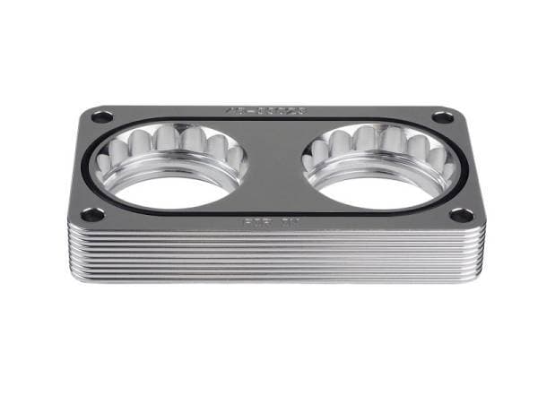 The serrated/helix design creates air turbulence in the intake manifold. This turbulence increases the air pressure in the combustion chamber, resulting in increased performance and improved throttle response. The serrated/helix combination design also reduces intake whistle that occurs with helix-only designs (US PAT 07055513). This Silver Bullet throttle body spacer is precision machined from 6061-T6 billet aluminum for lightweight, high strength, and perfect fit and finish. Its black anodized finish gives a stealthy look. Adding a Silver Bullet Throttle Body spacer lengthens the intake track which helps increase intake air speed, performance and improve throttle response. This Silver Bullet throttle body spacer uses all factory mounting locations, making for a hassle-free installation. A supplied gasket provides a perfect seal. This Silver Bullet Throttle Body Spacer will fit with Magnum FORCE Intake System 54-10301 and 51-10301.