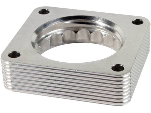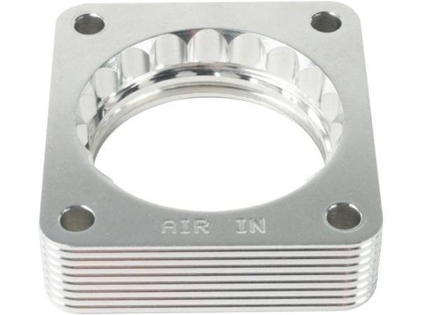 Silver Bullet throttle body spacers create turbulence in the air flow at the point just prior entry into the engine increasing horsepower, torque and improving throttle response and fuel efficiency. Silver Bullet throttle body spacers are constructed out of durable T-6061 billet aluminum and using a unique serrated/helix entry to create turbulence at the manifold while eliminating the annoying whistle found in other helix only throttle spacers.