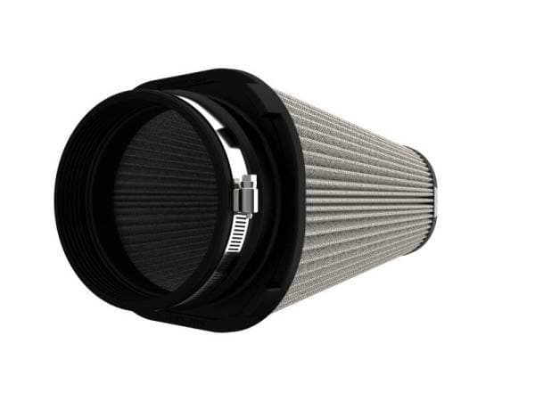 This filter features three layers of oil-free synthetic media and requires no oil during maintenance to provide maximum convenience. Its progressive layering provides great filtration efficiency and dust holding capacity. This media is best suited for street and light off-road use. Pro DRY S filters are easily recharged with aFe's POWER CLEANER. aFe POWER performance air filters use a rounded, evenly spaced pleat design which allows for more usable filter surface area, providing increased flow and greater dust holding capacity. This aFe POWER performance air filter is constructed with a polyurethane base and a lightweight twill weave carbon fiber top. Unlike other materials that degrade after repeated heat cycles in an engine bay, polyurethane maintains its original molded shape. Utilizing the filter's retention groove, the filter locks into most Stage-2 housings with zero hardware. This simple design allows for easy filter maintenance and replacement.