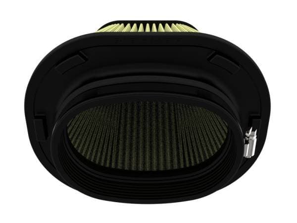This filter features seven layers of hybrid media for maximum protection. The patented combination of oiled cotton gauze with synthetic material allows this media to thrive in the dustiest and dirtiest environments imaginable. Pro-GUARD 7 filters are easily recharged with our aFe POWER CLEANER and Gold Air Filter Oil. aFe POWER performance air filters use a rounded, evenly spaced pleat design which allows for more usable filter surface area, providing increased flow and greater dust holding capacity. This aFe POWER performance air filter is constructed with a polyurethane base and top. Unlike other materials that degrade after repeated heat cycles in an engine bay, polyurethane maintains its original molded shape. Utilizing the filter's retention groove, the filter locks into most Stage-2 housings with zero hardware. This simple design allows for easy filter maintenance and replacement