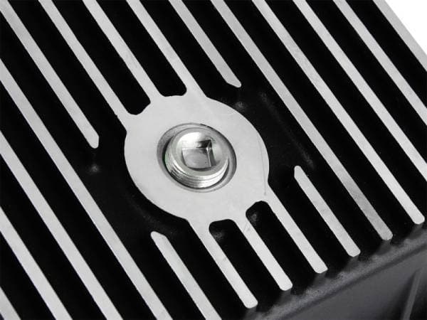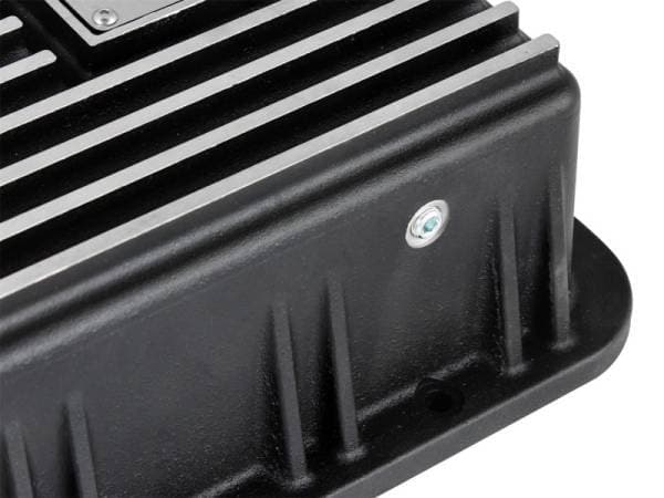 aFe POWER Pro Series deep transmission pan brings performance engineering to the protection of your trucks transmission. This transmission pan has additional capacity for 2 more quarts over stock at the factory line, a magnetic drain plug and a 1/8" NPT port for your temperature sensor. Built-in internal and external fins transfer heat from the fluid to the outside air for maximum cooling. This transmission pan is constructed out of durable die-cast A356 aluminum with reinforced ribs and a wrinkle black powder-coating for maximum strength and styling.